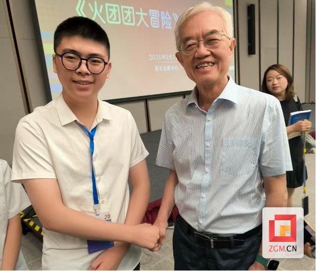 值得一提的是,在本届宋庆龄发明奖期间,张口笑有幸现场聆听中国科学技术大学副校长、清华大学公共安全研究院院长、火灾科学奠基人范维澄教授的科普讲座《火团团大冒险》,并与其合影交流。他表示:“范院士用‘物理之火’研究燃烧,用‘数字之火’模拟灾情,用‘人心之火’普及安全教育,这种跨学科融合的思维让我深受启发。我愿效法范老,用物理公式作火把,编程代码为薪柴,在数字洪荒里闯出一条新路。”